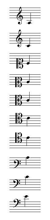 کلیدهای دیگر بعد از جای گذاری کلید سل به ترتیب حروف الفبا نام گذاری