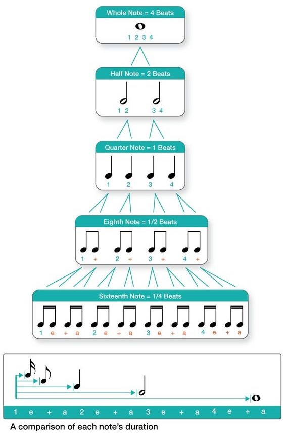 برای مثال: نت گرد به نوازنده می فهماند که صدا باید 4 قدم ادامه پیدا کند. البته باید رفت و برگشت را در نظر داشته باشید. پس از آن که 4 ضرب طول کشید که صدا تولید شود، باید از ادامه پیدا کردن صدا جلوگیری کنید.